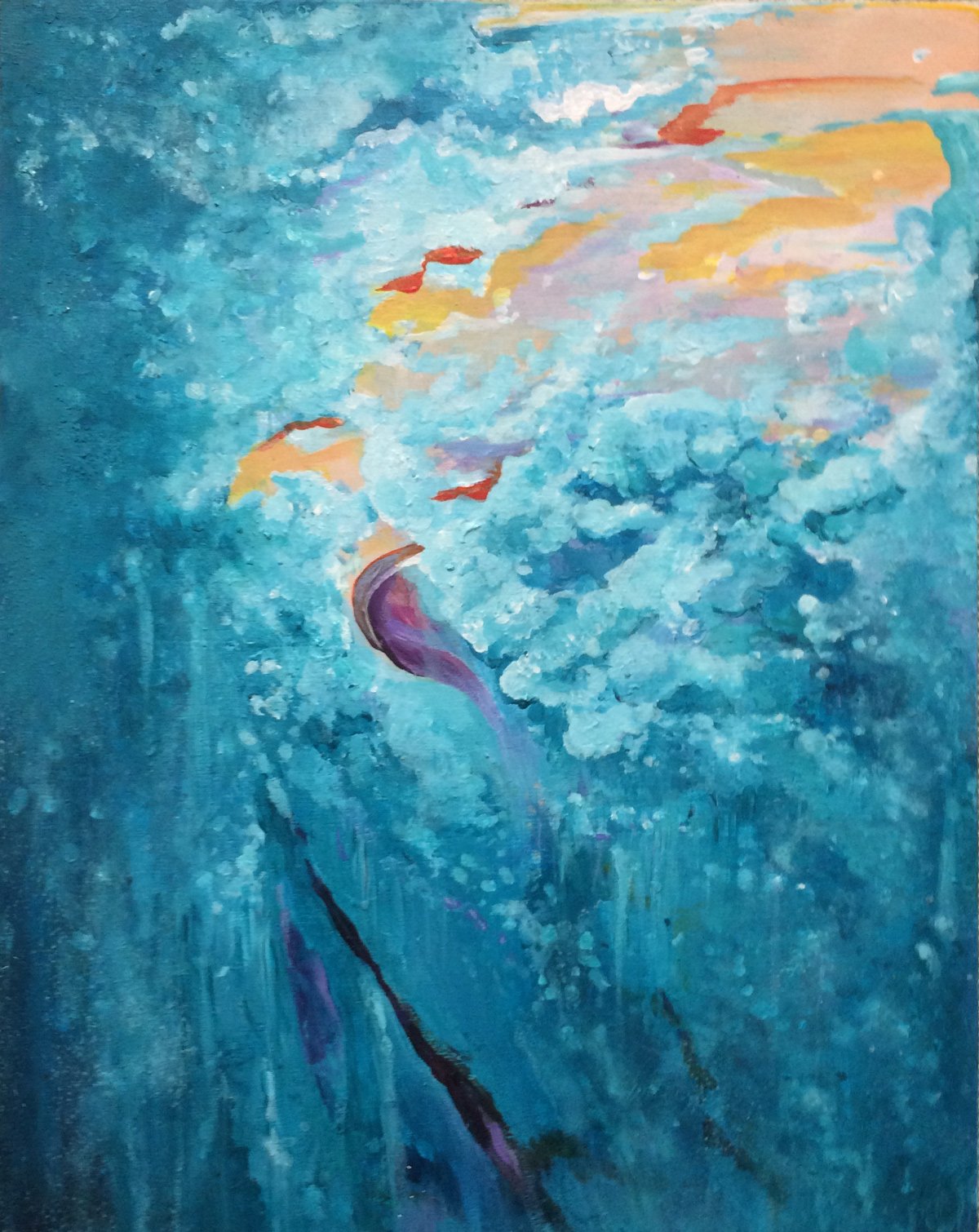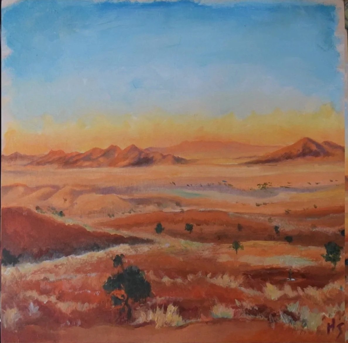 Over the years, my artwork has taken on a dreamy, saturated, creamy aesthetic. The bright colors and soft shapes emerge from a beach or desert scene. The influences of growing up in Southern California are evident in my work. In addition to landscapes in acrylic and oil pastel, I have also done smaller-scale commissioned portraits – both human and animal. Canvases are nice, but I prefer wooden panels. I have also participated in multiple chalk festivals.